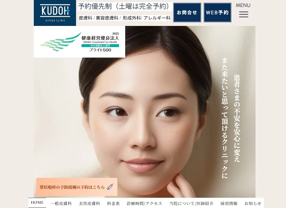 一般皮膚科・小児皮膚科・アレルギー科も標榜しており、世代を問わず相談しやすい体制が整っています。